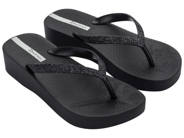 Heb je een feestje in de zomer? De Ipanema Anatomic Mesh Chic met plateauzool geeft een glamourous look aan iedere outfit. De teenslipper met platformzool heeft glitters op de bandjes en een soepel voorgevormd voetbed voor perfect loopcomfort. Ipanema slippers zijn gemaakt van Flexpand: soepel en duurzaam, vrij van giftige stoffen en Vegan.