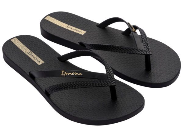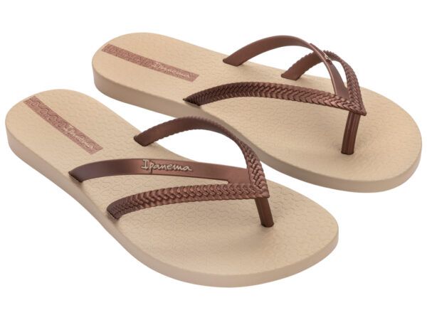 De Ipanema Bossa slipper voor dames brengt een originele twist op de originele flip-flop. Bossa's gespleten bandje inclusief vlecht-design geeft een vernieuwende touch aan je outfit. Deze teenslipper heeft een slank voetbed van soepel en zacht Flexpand, een materiaal dat bij de productie 100% gerecycled wordt en bovendien vegan is.
