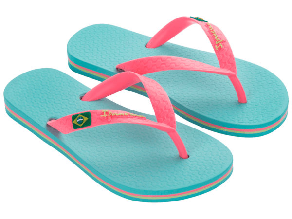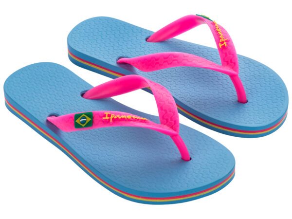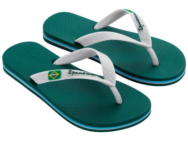 De Ipanema Classic Brasil voor kids is een must-have teenslipper van de vroege lente tot de zwoele nazomer. Dit model heeft het design van de klassieke Braziliaanse teenslipper, met het vlaggetje op de band. De stevige bandjes bieden goed comfort en het voetbed is soepel en zacht. Urenlang speelplezier op een verantwoorde manier: de slippers zijn gemaakt van gerecycled Flexpand. Een uniek materiaal dat tevens Vegan is.