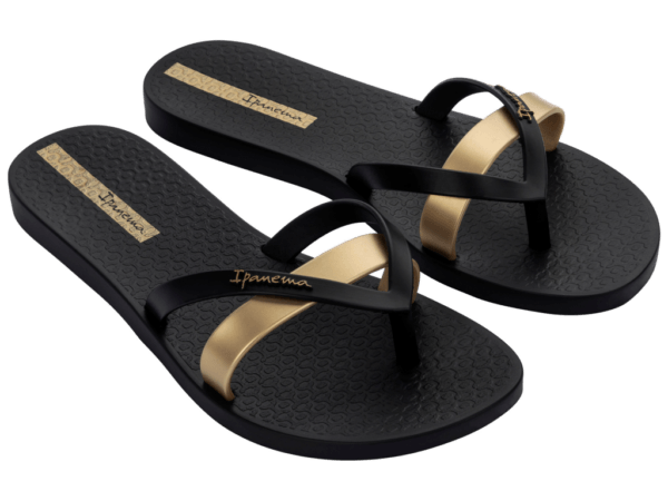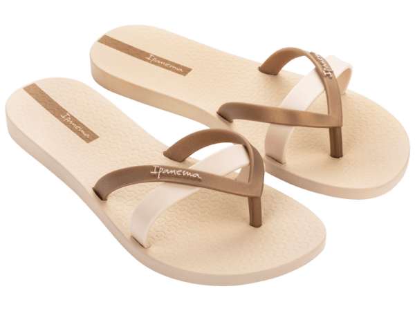 De Ipanema Kirei teenslipper voor dames heeft een unieke uitstraling door het tweede bandje horizontaal over de wreef met metallic touch voor extra stevigheid. Deze veelzijdige slipper biedt een elegante toevoeging aan iedere outfit, van vroege lente tot zwoele nazomer. De Ipanema slippers zijn gemaakt van volledig recyclebaar Flexpand, een zacht en soepel materiaal waarop je urenlang heerlijk loopt.
