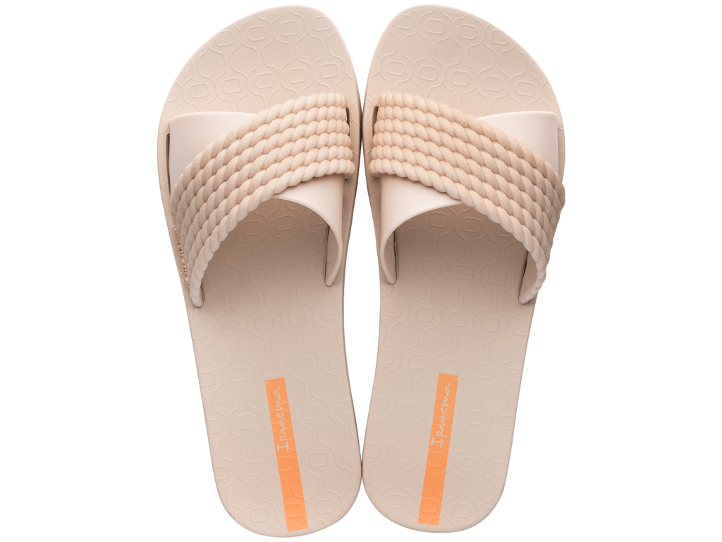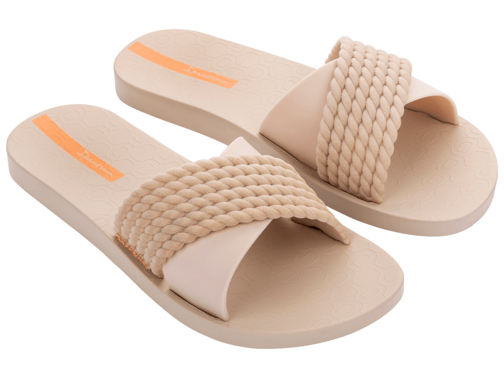 Basic but stylish! Met deze woorden omschrijf je de Ipanema Street slipper voor dames perfect. Dit model schuif je makkelijk aan, maar geeft je look wat extra's door een gladde en een gevlochten band met het effect van touw. De slide - een chique badslipper - is verkrijgbaar in verschillende kleuren. Ipanema slippers zijn gemaakt van Flexpand, een soepel en zacht materiaal dat tijdens de productie telkens opnieuw gerecycled wordt en 100% vegan is.